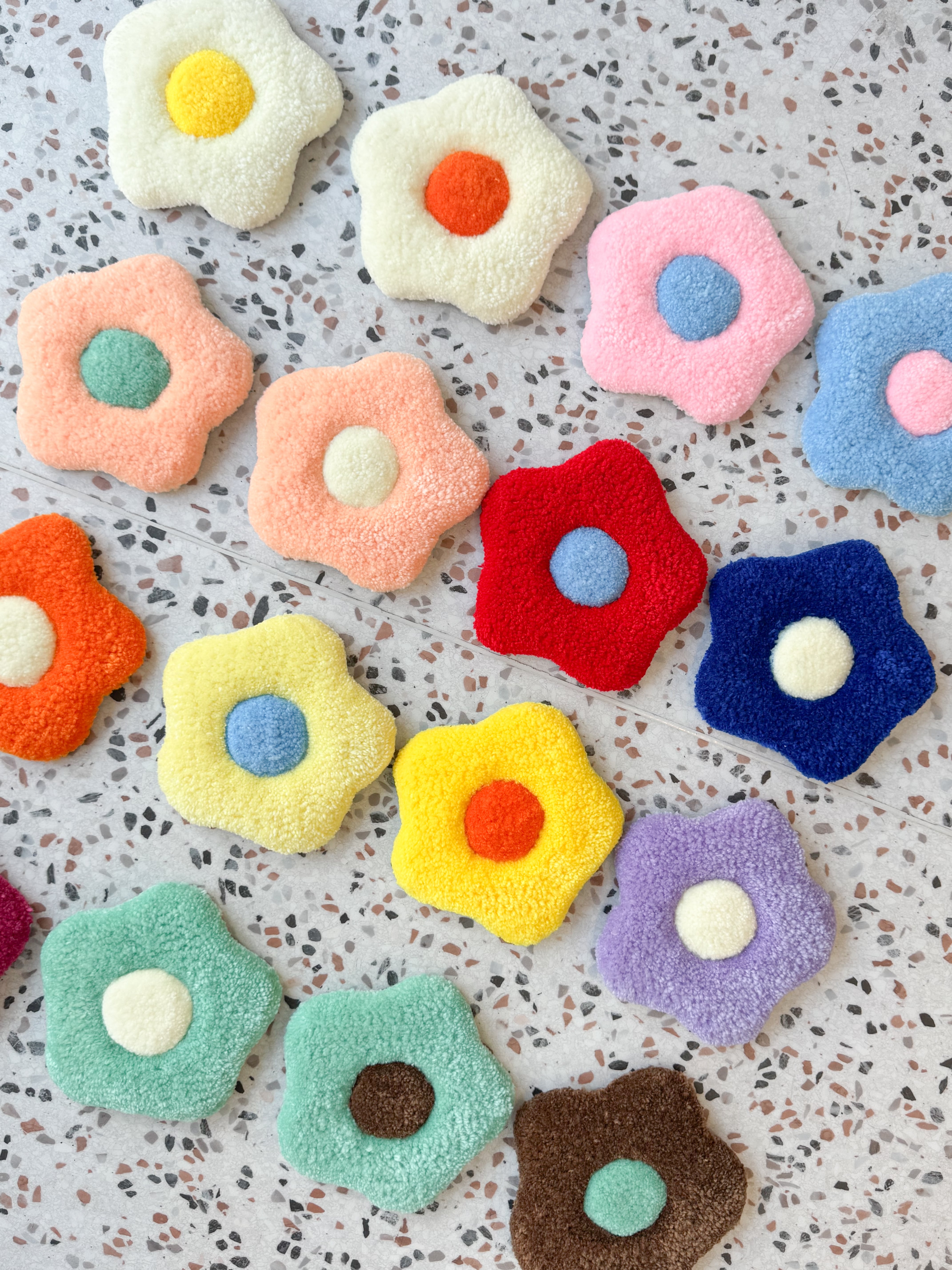【タフティング】と呼ばれる製法で、全て1点ずつ手作業で制作しております。