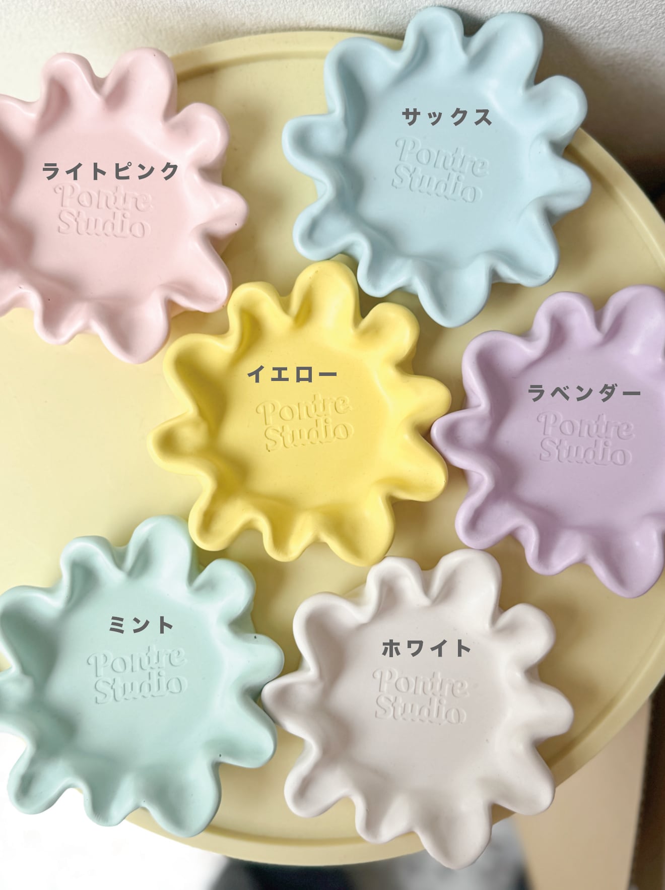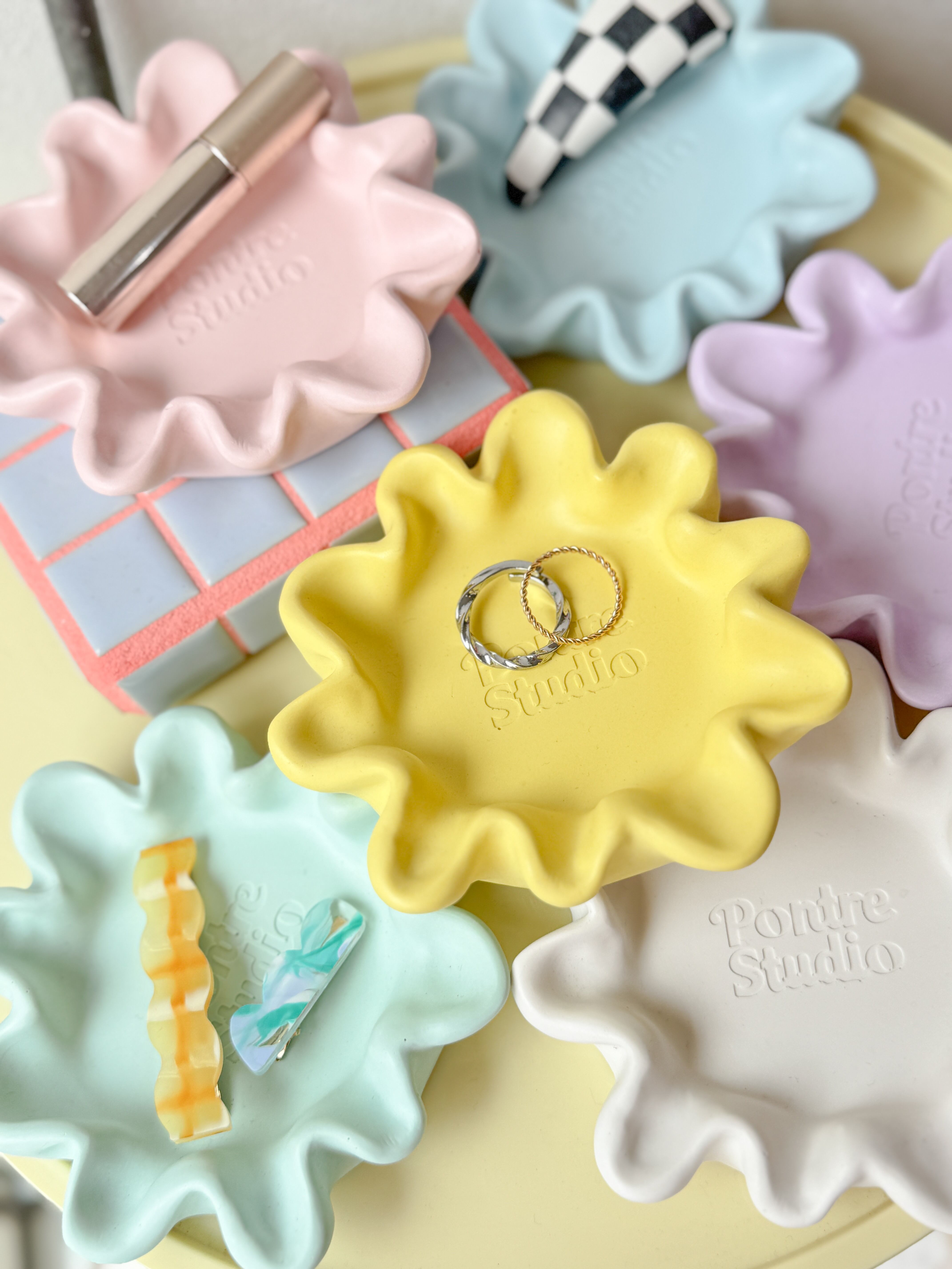 ジェスモナイトで制作したフリルのようなフォルムが可愛いらしいオリジナルトレイ。
